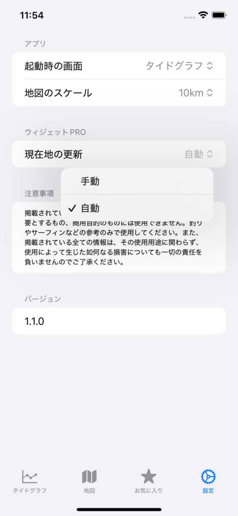 ウィジェットで現在地の自動更新を有効にするには、設定の現在地の更新を「手動」から「自動」に変更してください。