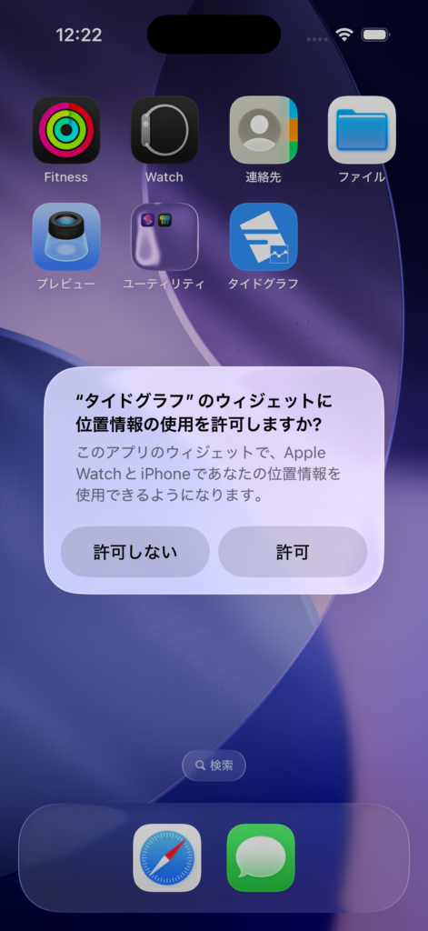 タイドグラフウィジェットで現在地の自動更新を利用にするには、事前に位置情報の取得を許可しておいてください。